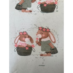 French Terry Sommersweat Hasen Muster 145 cm – Osterhasen Blumen Design Beige – 240 g/m² – Eigenproduktion