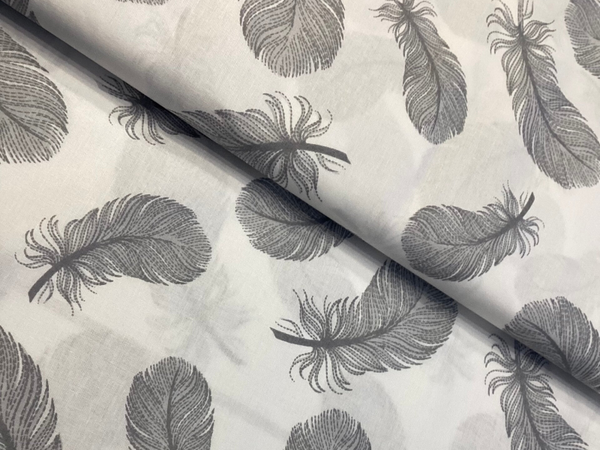 50 cm Baumwollstoff 100% Baumwolle Graue Feder auf Weiß Patchwork Meterware