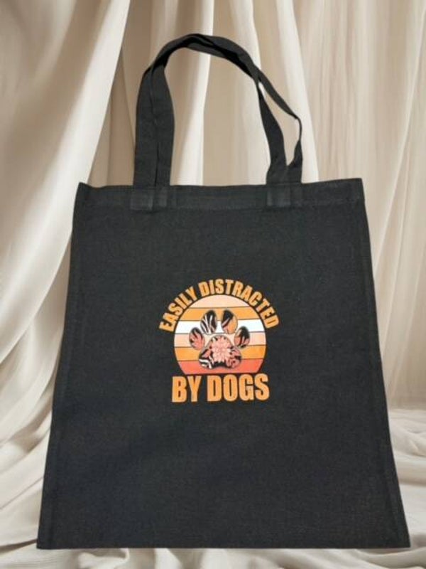 DOG MOM Motiv Polyester-Baumwolltasche SCHWARZ Lange Henkel, Nachhaltig, Umweltfreundlich Geschenkidee