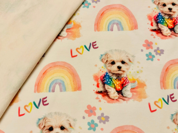 50 cm Malteser Regenbogen Love Alpenfleece / Wintersweat Meterware Eigenproduktion