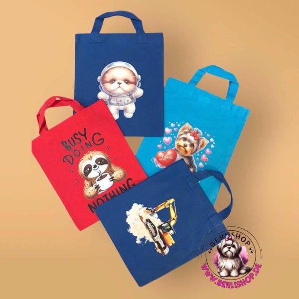 Jede Tasche ist ein Unikat, liebevoll gestaltet mit hochwertigen DTF-Drucken in verschiedenen Motiven.